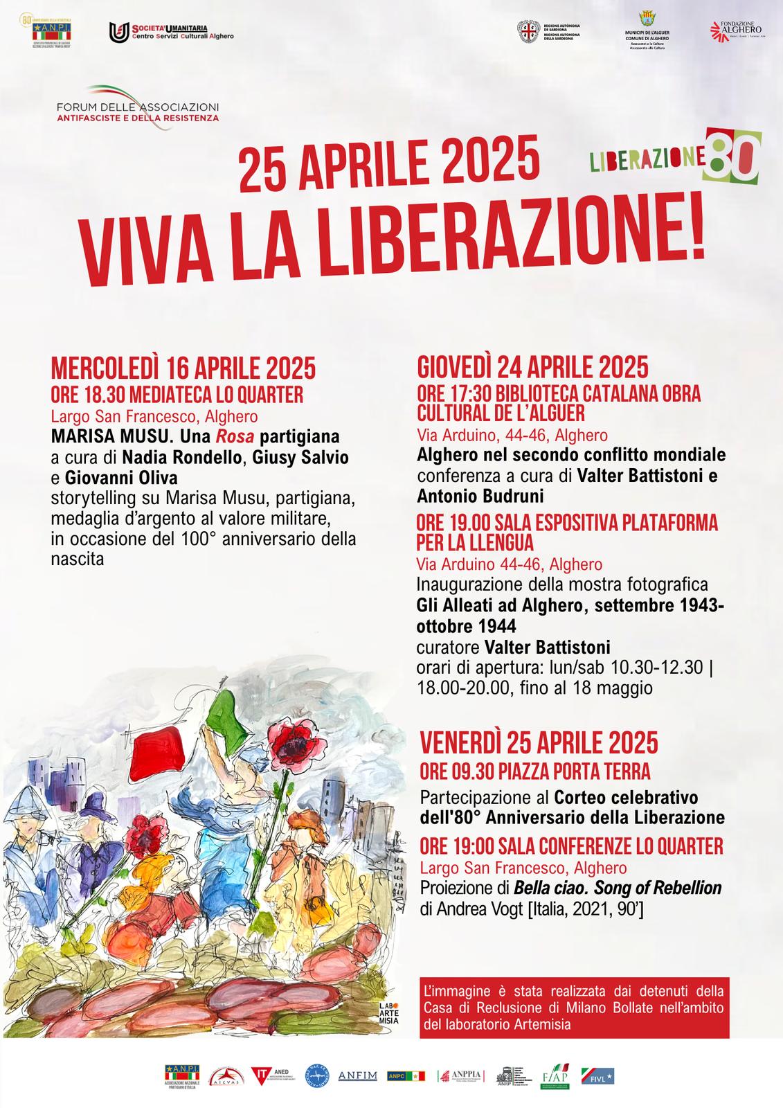 La sezione provinciale di Sassari e la sezione di Alghero “Marisa Musu” dell’ANPI, in collaborazione con il Centro Servizi Culturali di Alghero, e con il patrocinio del Comune di Alghero – Assessorato alla Cultura e il contributo della Fondazione Alghero si uniscono alle celebrazioni nazionali con tre giornate ricche di eventi.