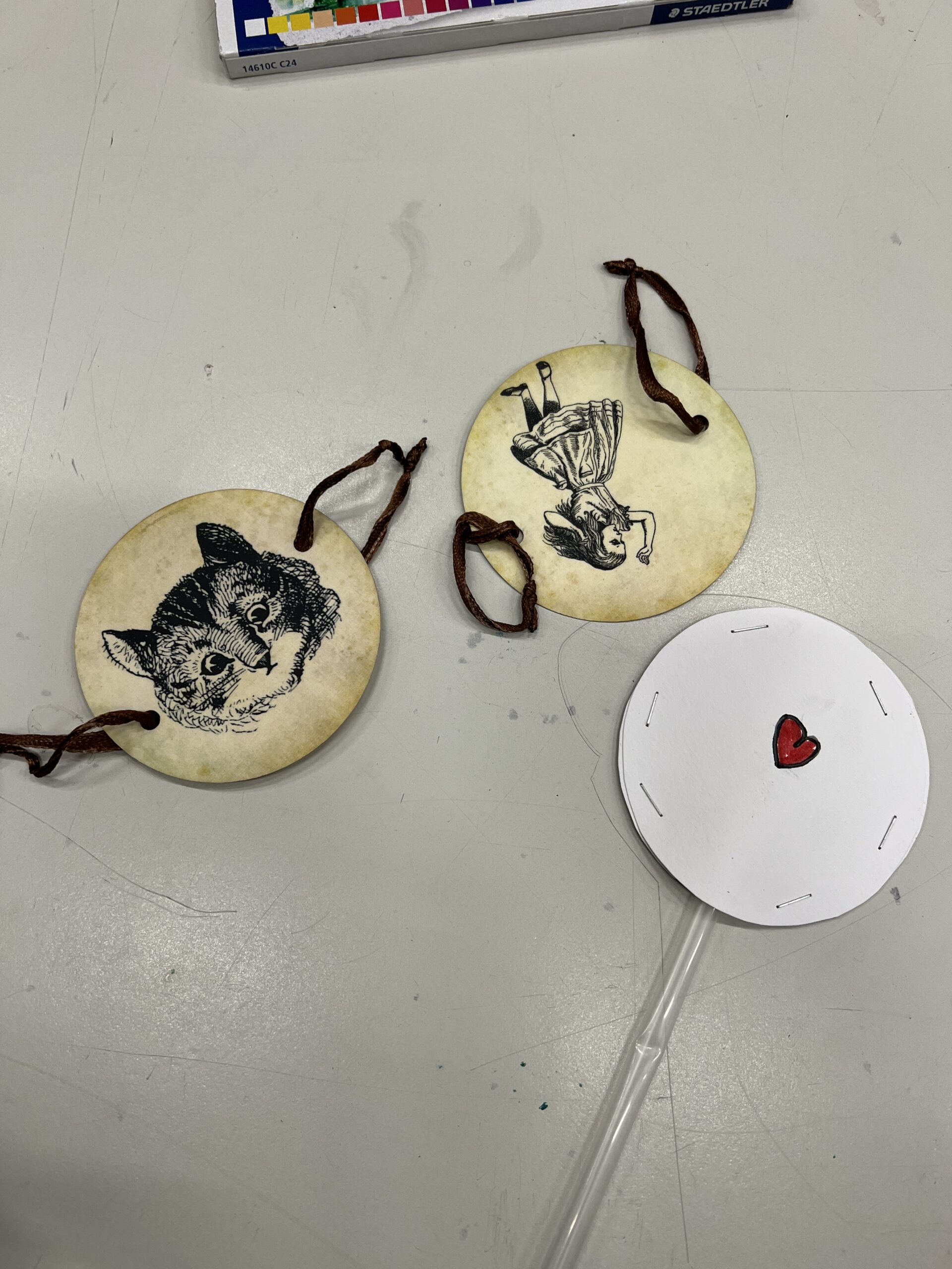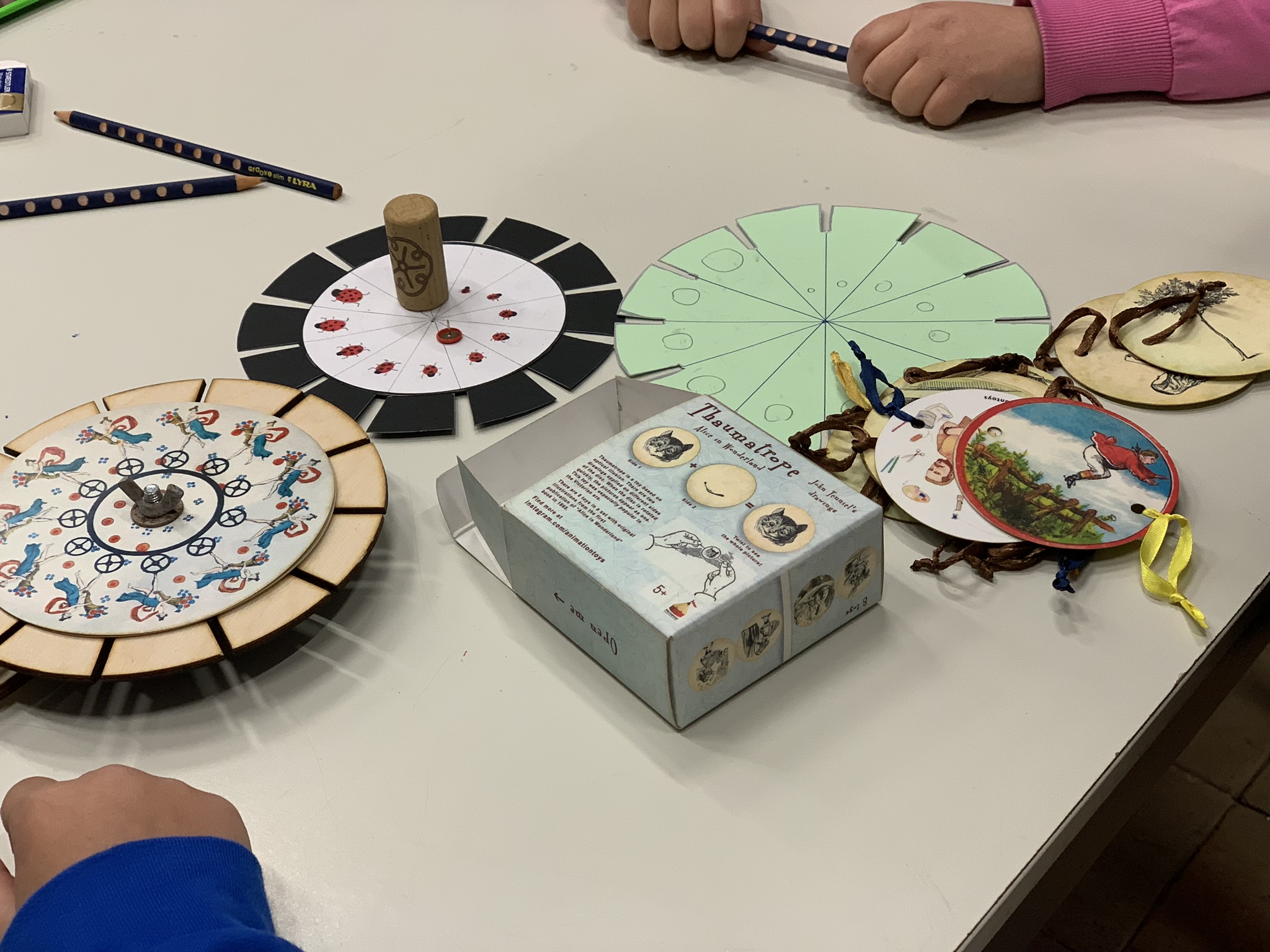 Al termine della visita, la classe si sposterà nella mediateca per partecipare a un laboratorio dedicato alla costruzione di uno strumento di pre-cinema: il taumatropio.