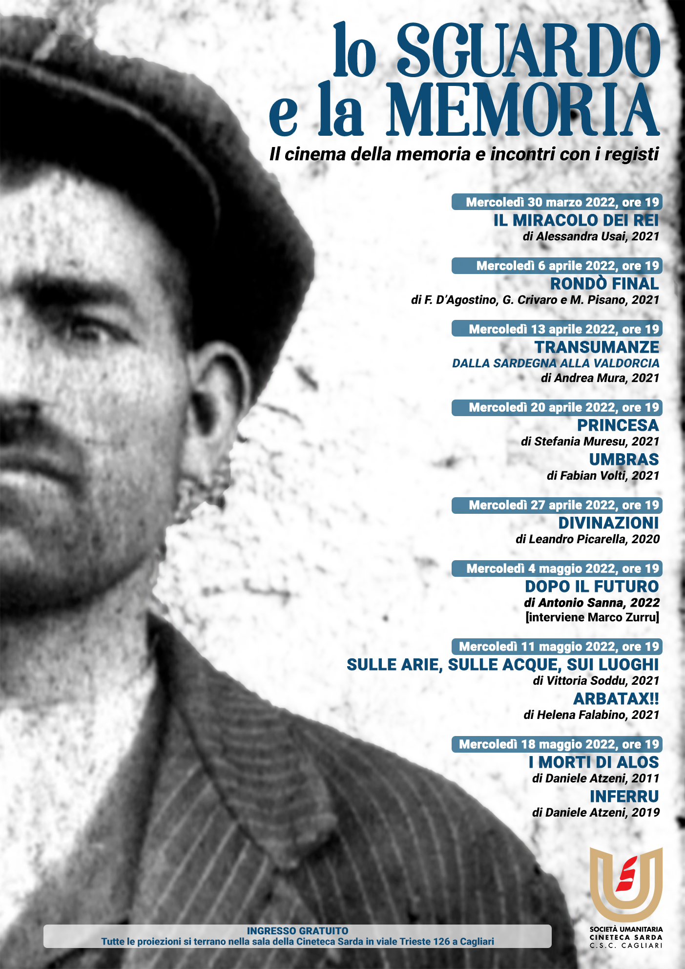 Prende il via mercoledì 30 marzo 2022 in Cineteca (viale Trieste 126) una rassegna intitolata LO SGUARDO E LA MEMORIA in cui si propongono 7 film recentissimi, di autori in maggioranza sardi, che recuperano immagini di archivio eterogenei (cinema di famiglia e cinema ritrovato) e le rielaborano in nuovi progetti audiovisivi.