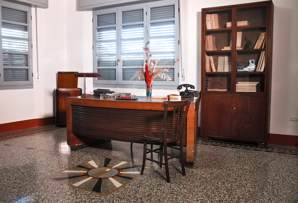 La Palazzina dell’ex direzione amministrativa diventa Museo di se stessa attraverso l’apertura ai visitatori di alcuni spazi, primo fra tutti l’Ufficio del Direttore. Si tratta dell’unico spazio musealizzato attraverso l’allestimento di mobilio e suppellettili d’epoca, messi a disposizione dal Museo del Carbone, e conserva il pavimento originale arricchito da uno stemma a intarsi che rappresenta la tipica lampada del minatore, simbolo della città. La stanza ospita anche l’installazione EX-3DI’ VERSIONE 2.0, a cura di Marco Lisci, in grado di far compiere ai visitatori un vero e proprio tour virtuale della palazzina, alla scoperta degli ambienti riprodotti come quando la stessa si trovava in piena attività.