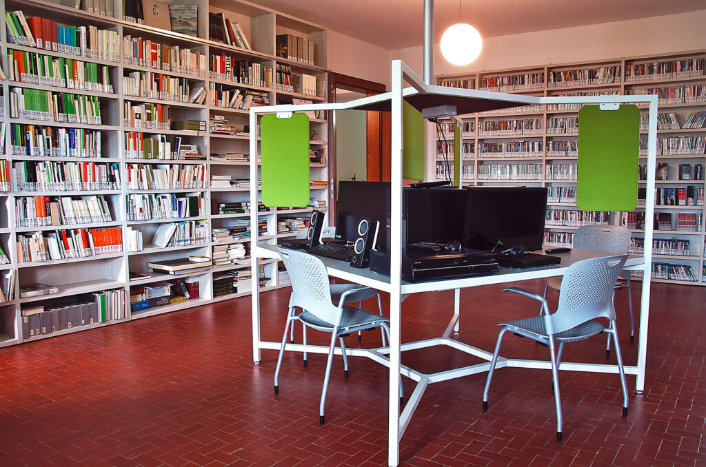 L’isola hub con quattro postazioni garantisce la possibilità di consultare in loco i materiali.