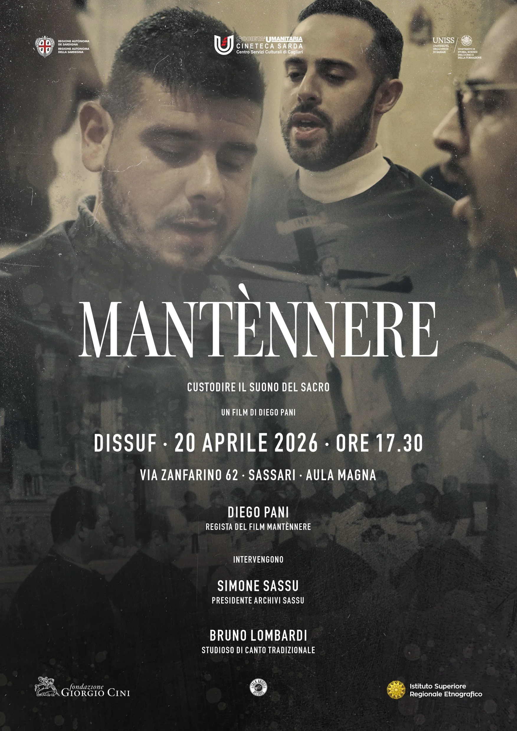 Appuntamento da non mancare lunedì 20 aprile alle 17.30 presso l’Aula Magna del DISSUF: ci sarà la proiezione del suggestivo film Mantènnere di Diego Pani sul Canto a Cuncordu. Seguirà il dibattito volto a illustrare il significato profondo dell’antico canto polivocale della Sardegna, una delle espressioni più alte e identitarie della comunità lussurgese. Documentario che indaga lo stretto legame tra musica, rito e comunità durante la Settimana Santa, evidenziando la forza di una tradizione secolare, trasformata e mediatizzata, anche attraverso lo sguardo dei ricercatori e il ruolo della documentazione etnografica.