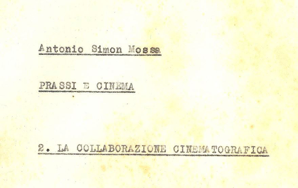 • Prassi e cinema, manuale teorico metodologico inedito di cinematografia scritto da Antonio Simon nel 1942.