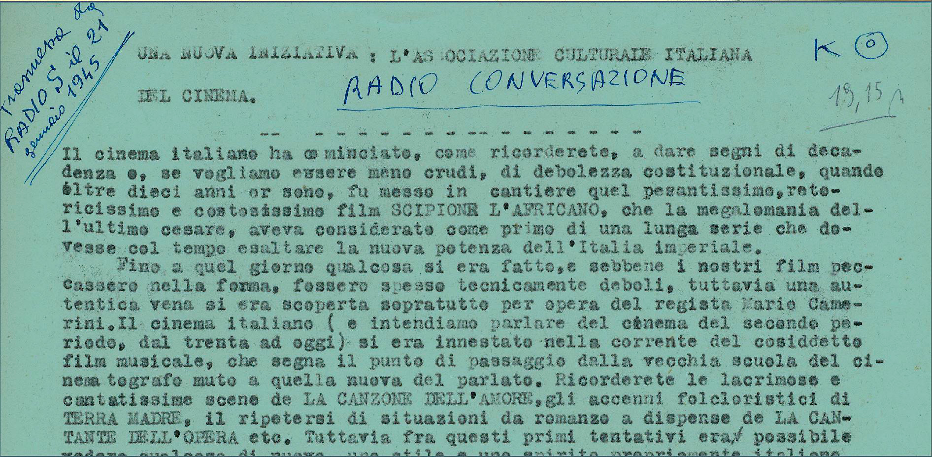 • L’armata grigia, sceneggiatura del film scritta insieme a Fiorenzo Serra durante gli anni universitari e di frequenza del CineGuf a Firenze.