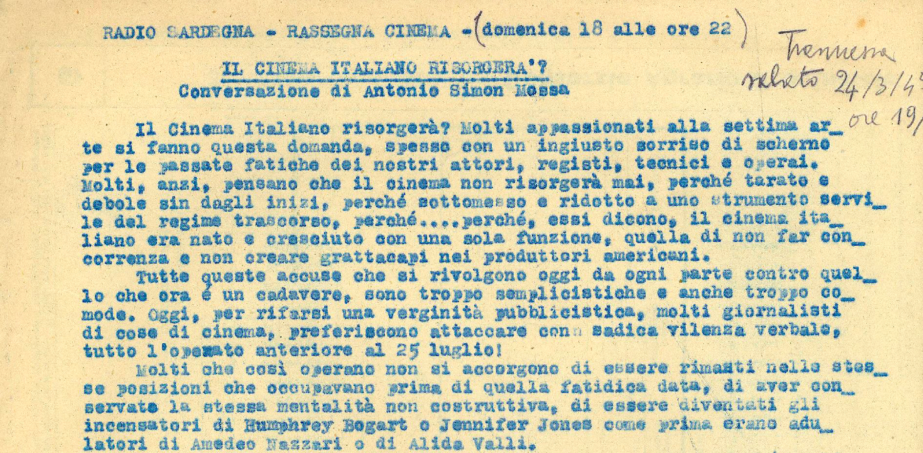 Testi cinematografici; riduzione opere letterarie per radio; redazione dei vangeli in sardo; Romanzo Puxerra