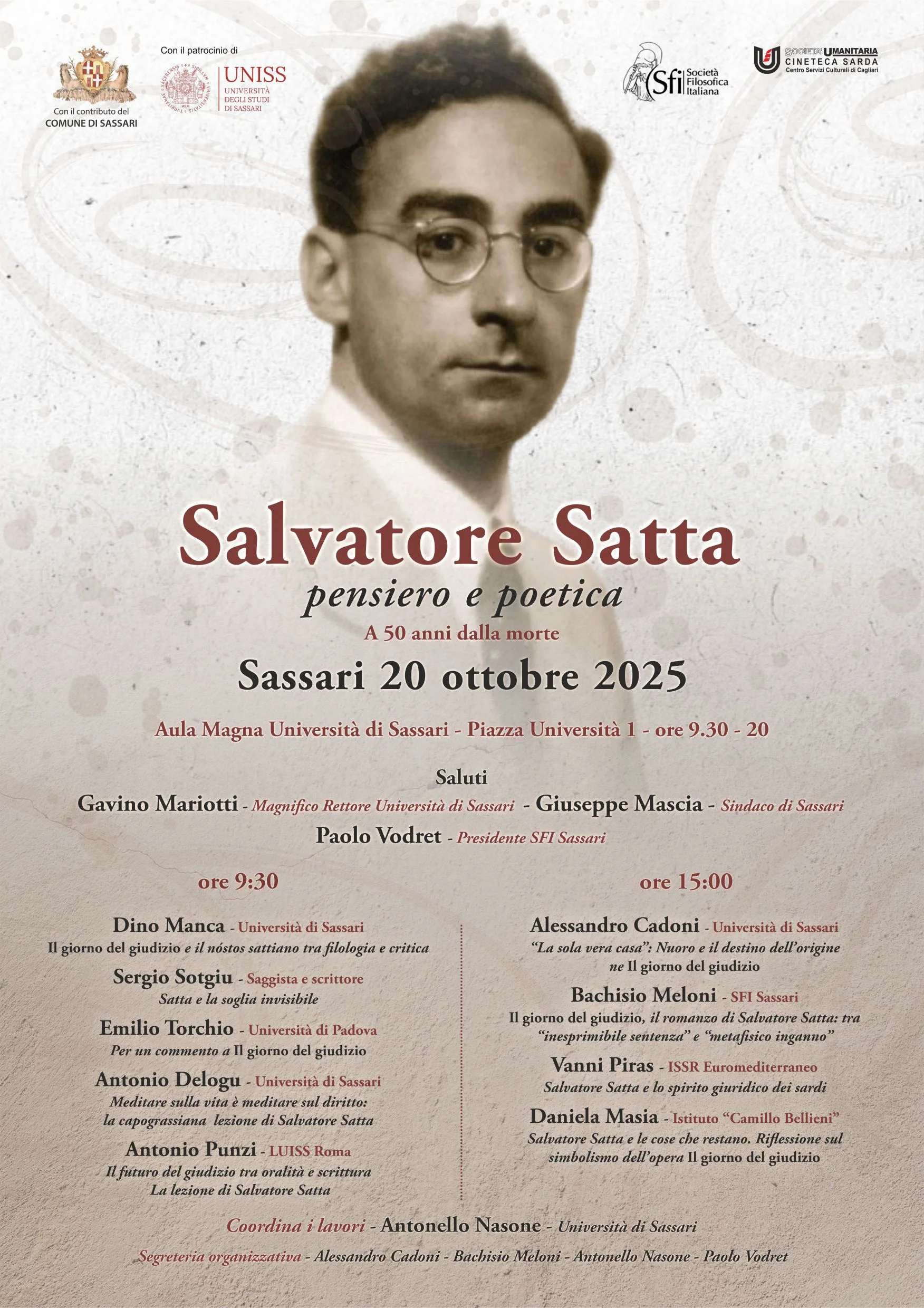 Salvatore Satta, giurista e scrittore una grande figura di intellettuale con una produzione culturale unica e preziosa. Grazie a una certosina analisi filologica la sua opera è riemersa nel convegno di studi promosso in sua memoria dalla SFI, sede di Sassari in collaborazione con l’Università turritana. Autore letto e tradotto in tutto il mondo, meriterebbe maggiore attenzione e studio nelle scuole italiane.