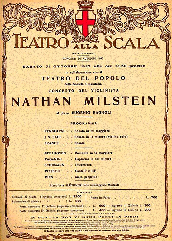 Locandina del concerto del violinista Nathan Milstein