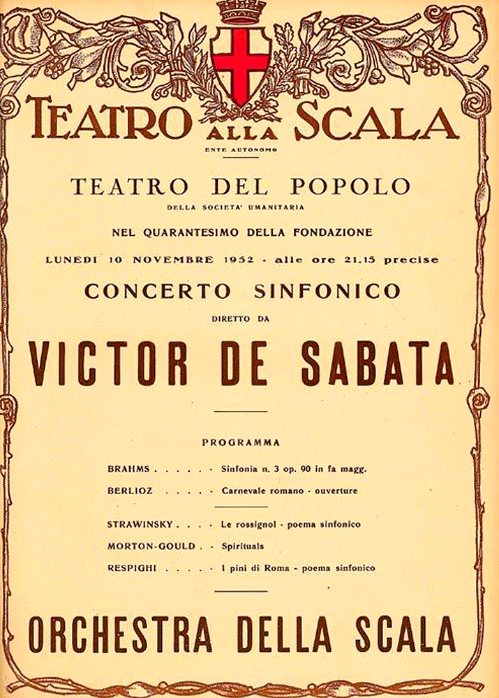 Ma sarà al Teatro alla Scala che il TdP festeggerà il suo quarantesimo anniversario, con un concerto indimenticabile di Victor de Sabata (1951), dove “il desiderio di elevazione e di bene spirituale di tanti si è incontrato con la sublime magia di un sommo artista”.
