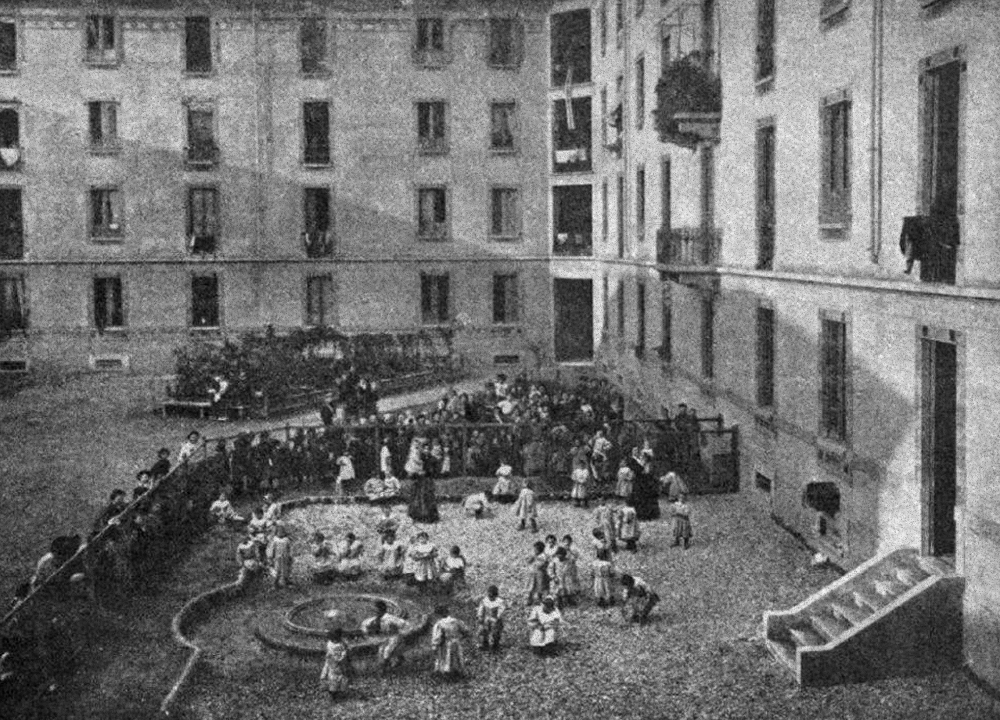 Il 1° luglio 1908, venne deliberata dal Consiglio direttivo della Società Umanitaria l’istituzione di una Casa dei Bambini nel quartiere operaio di via Solari. Ad appena un anno dall’avvio della sua esperienza pedagogica, che aveva riscosso tanto successo nel quartiere romano di San Lorenzo, Maria Montessori accolse con entusiasmo la proposta di creare una struttura analoga nel nuovo quartiere fatto costruire nel 1906 dall’Ente milanese, in cui si era rivelata la necessità di un asilo infantile, vista l’alta percentuale dei bambini in età dai tre ai sei anni. La scelta di adottare un modello così innovativo come quello montessoriano era stata caldeggiata dall’Unione Femminile, che si era trovata spesso ad operare in stretta sinergia con l’Umanitaria sulla base dei comuni intenti di provvedere con interventi mirati e tempestivi nella prevenzione e nella cura dello svantaggio e del disagio sociale.