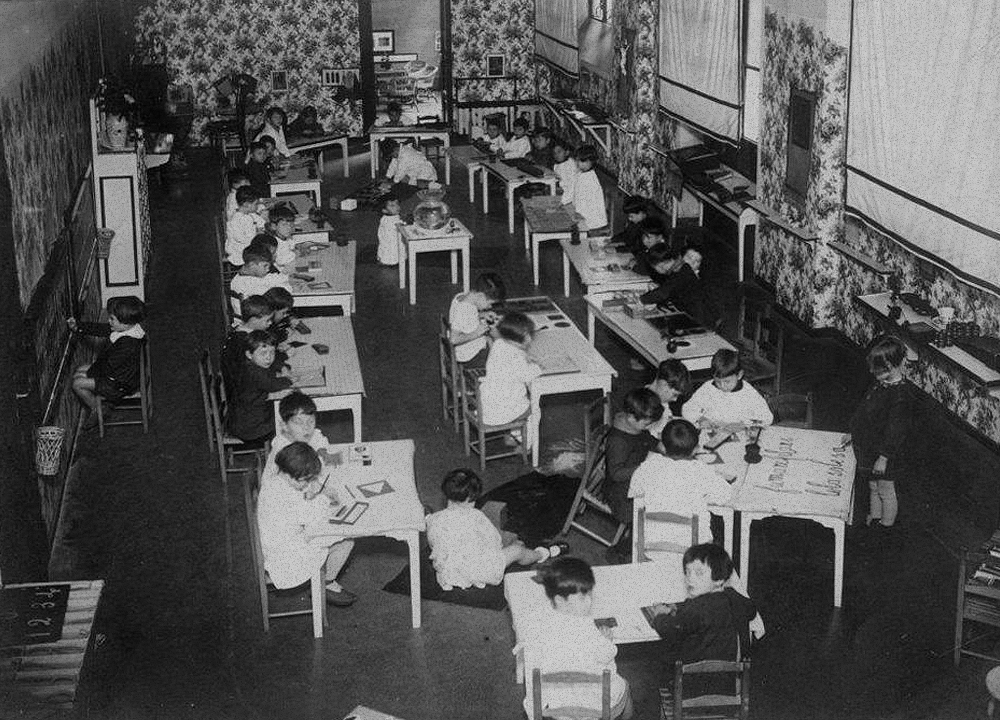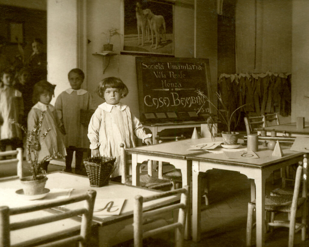 Maria Montessori, in contatto da diversi anni con gli ambienti del femminismo milanese, aveva intravvisto nello spirito dell’Umanitaria, con le sue pratiche di autogoverno, un fecondo terreno per portare a frutto la sua esperienza pedagogica, alimentata dal principio fondante dell’autonomia del soggetto da realizzare a partire dall’infanzia per la costruzione di un’umanità migliore. Si convinse perciò che proprio la Società Umanitaria, sempre pronta a farsi pilota di iniziative all’avanguardia, poteva diventare la sede ideale per la creazione di un buon osservatorio per la sperimentazione del suo metodo, provvedendo al tempo stesso alla produzione del materiale didattico da lei brevettato, opera che venne affidata al reparto falegnami della Casa di lavoro per disoccupati.