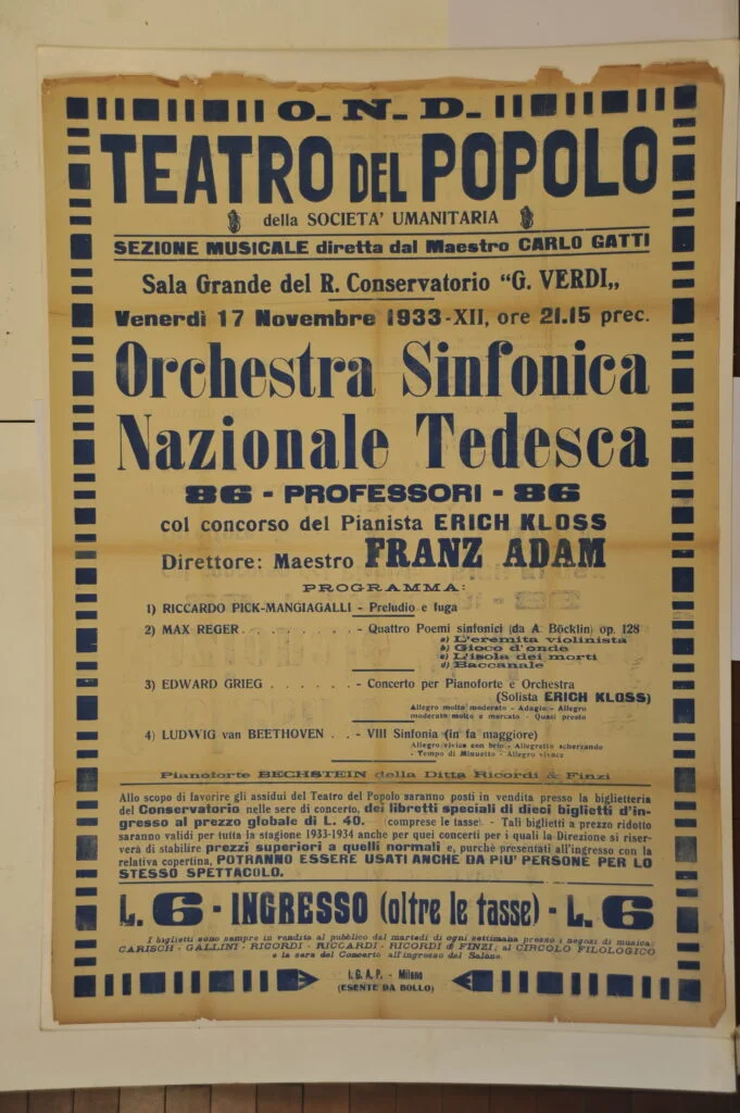 È grazie a questo importante sforzo collaborativo che negli anni vennero ospitati personaggi quali Arturo Toscanini, Arthur Honegger, Béla Bartok, Victor de Sabata, Artur Rubinstein, Arturo Benedetti Michelangeli, Igor Stravinsky, Sergej Prokov’ef, Andres Segovia, Luigi Nono, solo per citarne una minima parte. Quella con il Teatro alla Scala fu una vera e propria comunione di intenti tanto da inserire nell’art. 2 del proprio Statuto del 1921: “scopo dell’ente Autonomo del Teatro alla Scala, è quello di organizzare spettacoli e concerti del Teatro del Popolo, perché ciò possa contribuire al lustro del Teatro e dell’Arte italiana”.