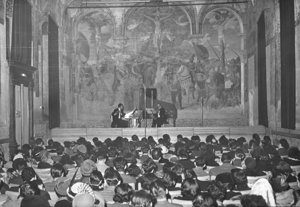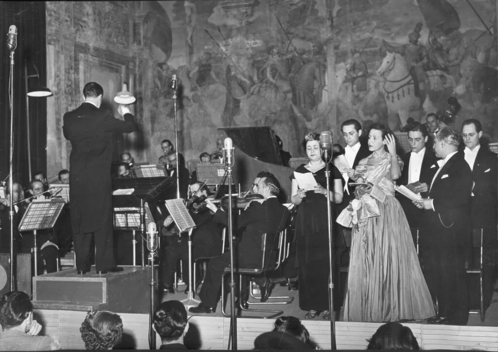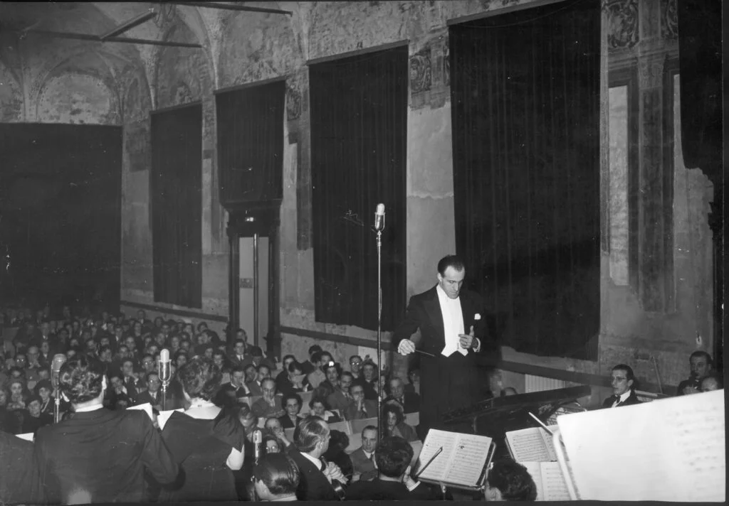 Ma forse è ancora più significativo lo sterminato elenco di radioaudizioni effettuate dalla Rai nel Salone degli Affreschi, ed offerte agli abbonati del Teatro del Popolo, che vedevano impegnate la compagnia artistica radiofonica dell’Orchestra Rai sotto la bacchetta di direttori quali Gavazzeni, Sanzogno, Giulini: basta scorrere i titoli delle opere liriche programmate ad esempio nel 1952 per inchinarsi al coraggio e alla curiosità artistica di scelte insolite quali Le Rossignol di Strawinski, La morte di Danton di Goffredo Einem, Resurrezione di Alfano, La dannazione di Faust di Berlioz, La fiera di Sorocinski.