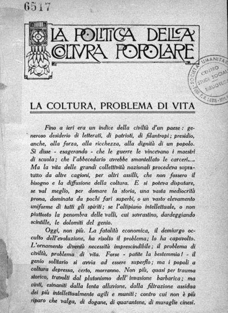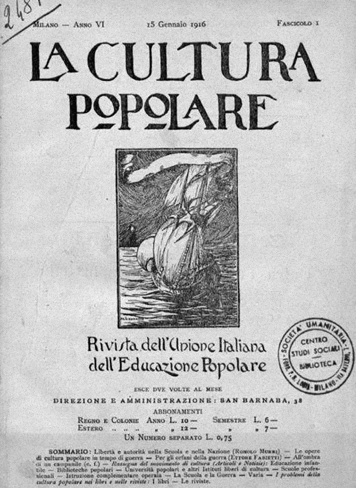 La rivista (che assunse poi il nome più moderno di “Cultura popolare”) trattò infatti tra il 1911 e il 1933, e poi ancora tra il 1950 e il 1977, i principali temi riguardanti la diffusione della scolarizzazione in Italia, i metodi più avanzati di insegnamento, l’istruzione degli adulti e degli emigranti, l’introduzione di nuove materie di insegnamento, l’istituzione di scuole professionali, insomma tutti quei temi che sono stati parte integrante del dibattito sulla cultura popolare, sviluppatosi in Italia nel corso del ‘900.