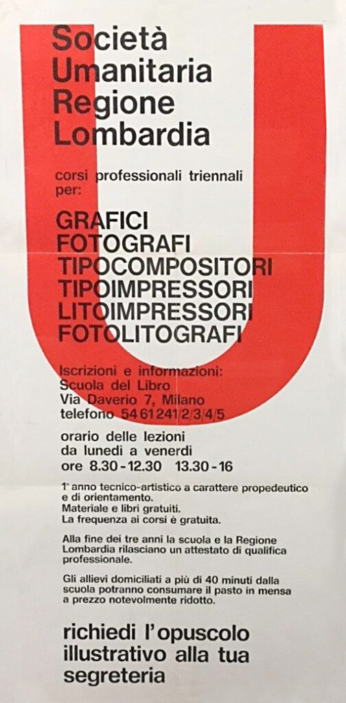 Solo per ultimo si pensava a cedere le scuole. Queste si sposavano perfettamente alla tradizione dell’Umanitaria: sarebbe stato possibile tentare una sperimentazione che unisse, nei programmi, scuola e lavoro. Un obiettivo che ancor oggi appare difficile ma irrinunciabile. Le scuole dell’Umanitaria erano all’avanguardia: quella per grafici era molto nota, sfornava ottimi professionisti, e stava iniziando a sperimentare nel campo degli audiovisivi. La Scuola per assistenti sociali avrebbe potuto indicare nuove vie e settori d’intervento per una società in cui poveri ed emarginati erano un fenomeno diverso rispetto al passato.