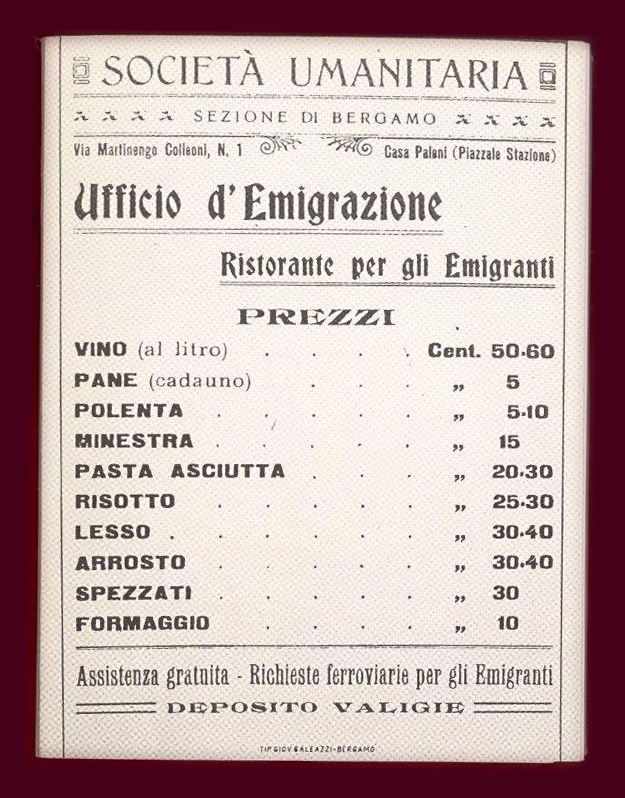 Per poter assistere questi emigranti, nei primi mesi del 1908, grazie all’opera dell’Associazione generale di Mutuo soccorso, l’Umanitaria istituiva a Bergamo un apposito ufficio di emigrazione incaricato di prestare la propria opera agli operai che decidevano di recarsi all’estero in cerca di lavoro.