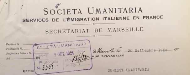 Nel 1923, a dodici anni dalla sua costituzione, la sede più longeva dell’Umanitaria in terra francese, quella di Marsiglia, era stata messa in condizione di estendere la sua opera a tutto il suo importante dipartimento: il sud della Francia. Istituita nel 1911 come Segretariato dell’emigrazione autonomo (nell’estate del 1914, in soli quindici giorni dovette assistere oltre 11.000 rimpatriati), nel 1921 la sede venne riorganizzata e trasformata in una Sezione direttamente dipendente dall’ufficio centrale di Milano: la situazione economica seguita al primo conflitto bellico imponeva un nuovo impegno sul fronte dell’emigrazione e del lavoro e gli sforzi vennero specialmente concentrati in Francia, divenuta la principale destinazione dei nostri emigranti, almeno prima della contrazione del mercato seguita alla crisi mondiale e ai successivi provvedimenti limitanti i passaggi alle frontiere.