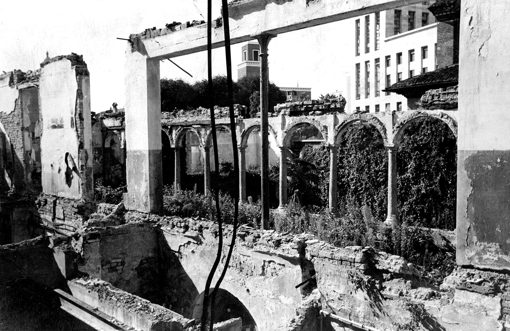 I ripetuti raid alleati sulla città di Milano, tra il 1943 e il 1944, devastano la sede della Società Umanitaria.