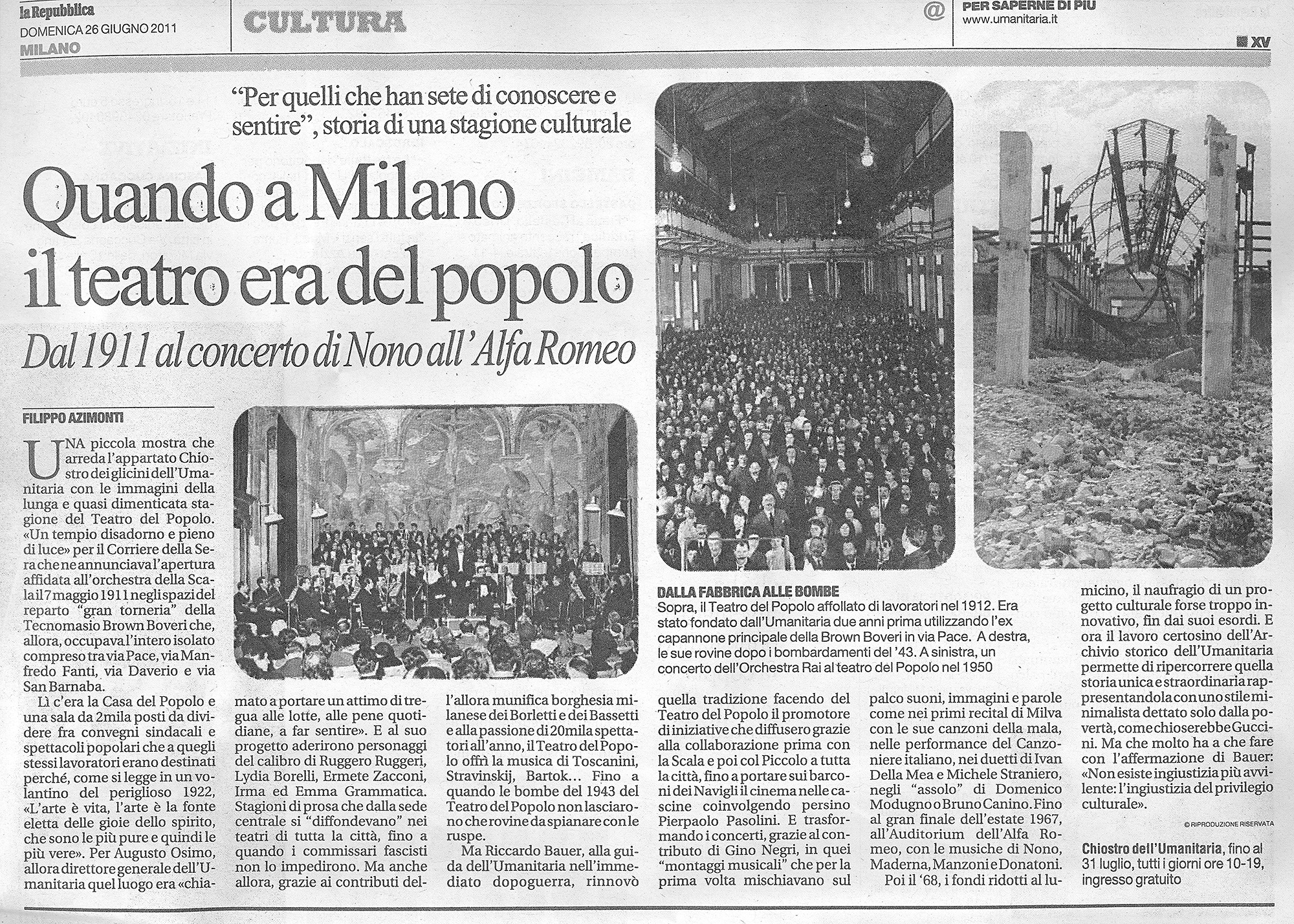 Centenario del Teatro del Popolo della Società Umanitaria