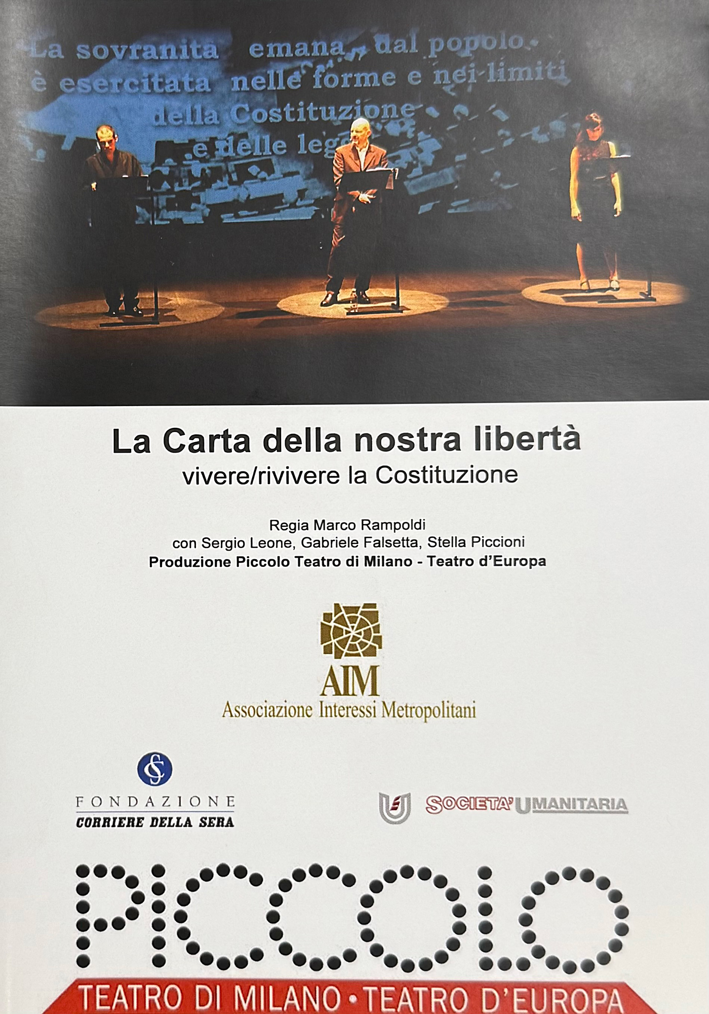 Insieme a Piccolo Teatro e Associazione Interessi Metropolitani, il discorso di Piero Calamandrei sulla Costituzione diventa lo spettacolo “La Carta della nostra libertà”, in scena al Teatro Studio di Milano con la regia di Marco Rampoldi.